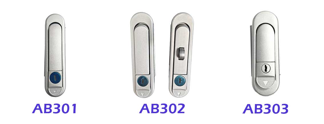 Плоский замок — один из самых распространенных типов дверных замков промышленных шкафов, красивый и простой в уходе. Наша компания выпустила плоские замки серий AB301, AB302, AB303, AB402, AB403, которые по структурной прочности, защитным характеристикам и эксплуатационным ощущениям имеют дифференцированную конструкцию и могут соответствовать различным спецификациям распределительной коробки и требованиям к установке шкафа управления.