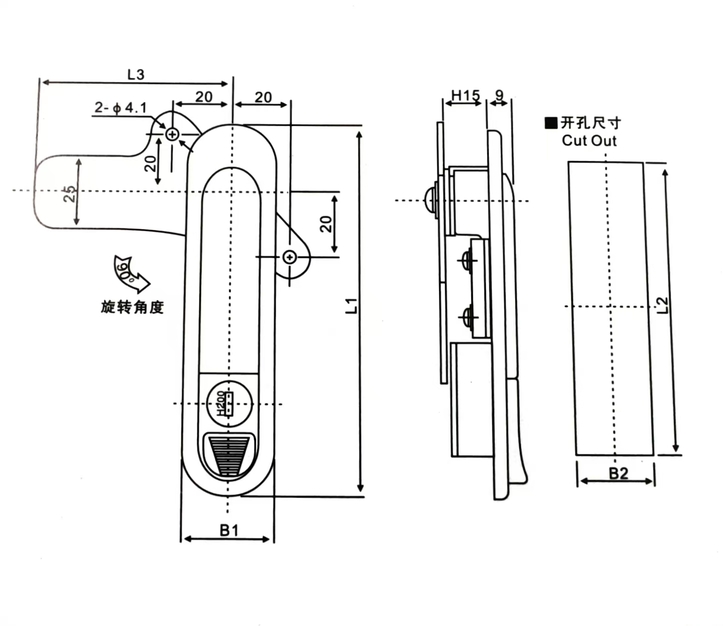 Описание конструкции: Поверните на 90 градусов, чтобы открыть или заблокировать.